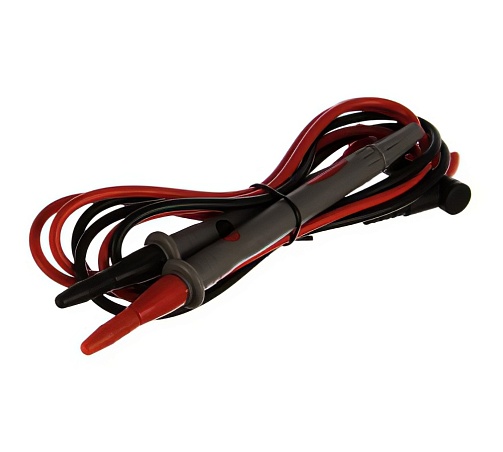 Щупы REX05 REXANT для тестера и токовых клещей. Они подсоединяются к гнездам мультиметра, для удобства имеют разные цвета: черный и красный. Как правило, черный щуп подключается на общее гнездо, а красный — на гнездо «+». Клеммы, провода и ручки щупов надежно изолированы для защиты пользователя от поражения электрическим током.  Для удобства работы металлические концы щупов заострены.