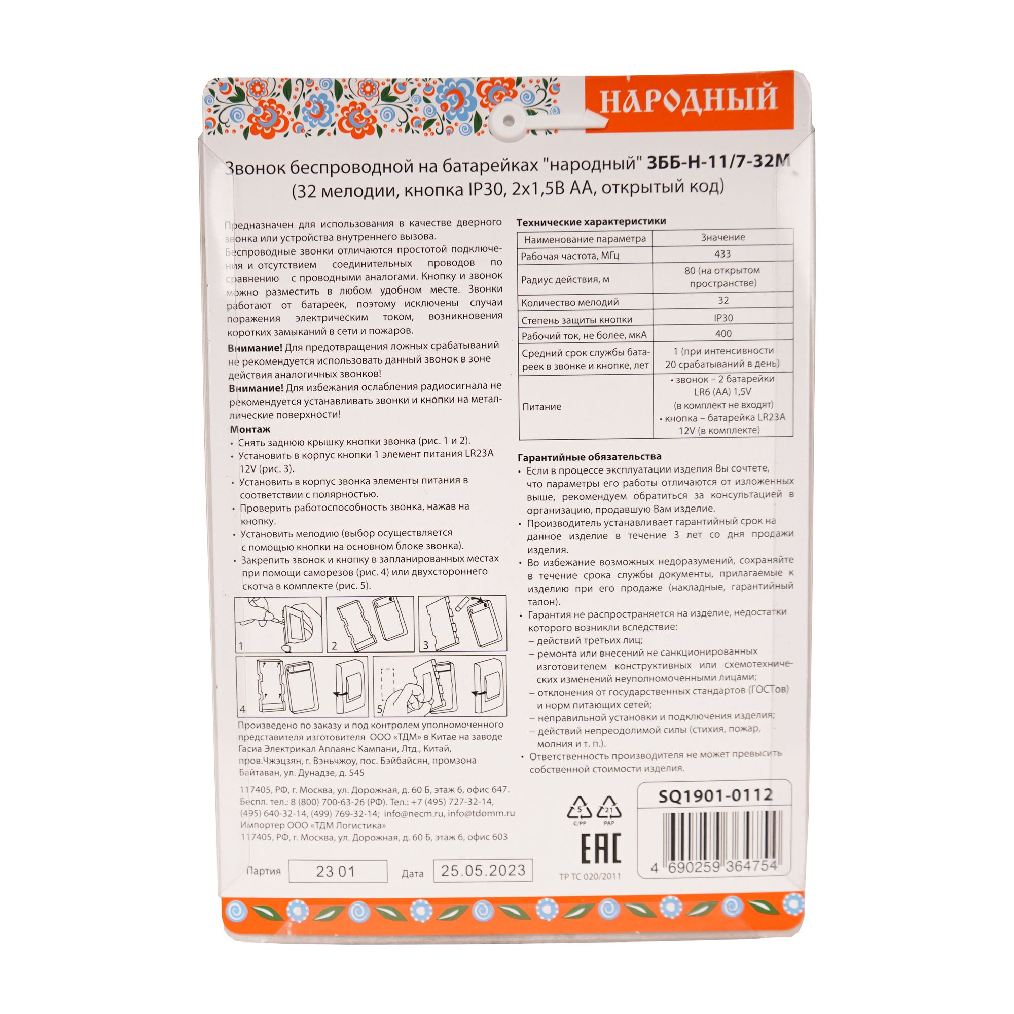 Звонок народный ЗББ-Н-11/7-32М беспроводной