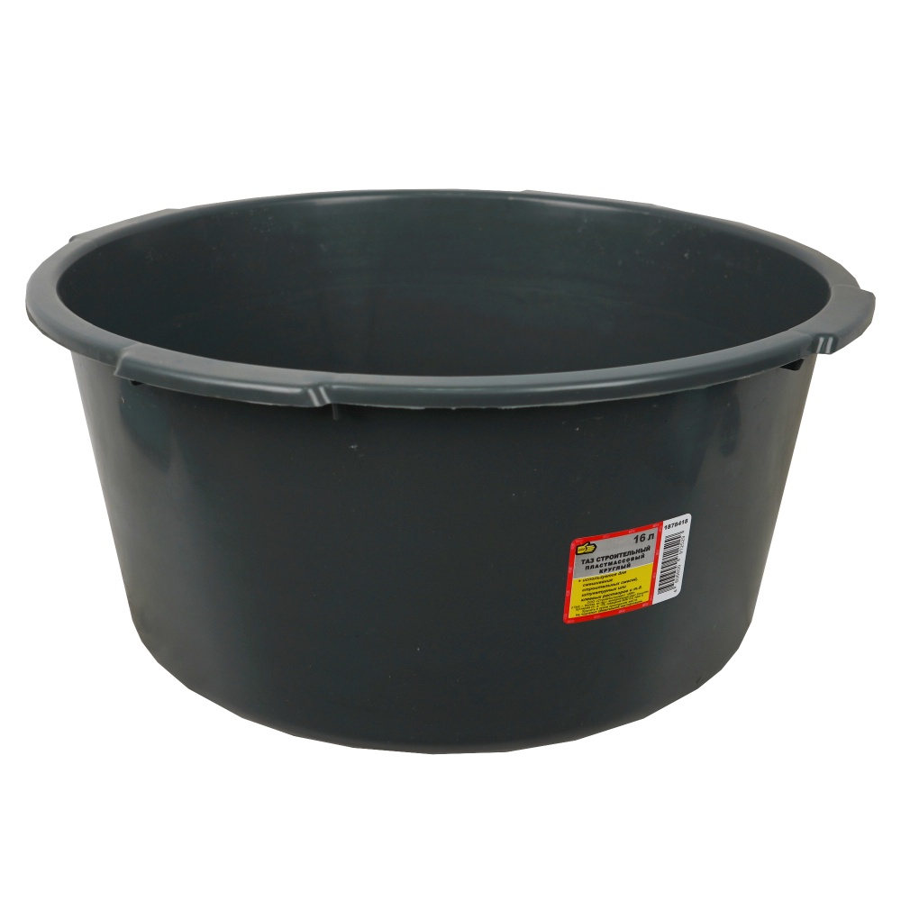 Используется в штукатурно-отделочных работах для затворения раствора, и перемешивания пескобетонных смесей. Так же в нем можно хранить сухие строительные смеси, вязкие и жидкие растворы. При малярных работах так же можно использовать строительный таз для перемешивания лакокрасочных материалов.