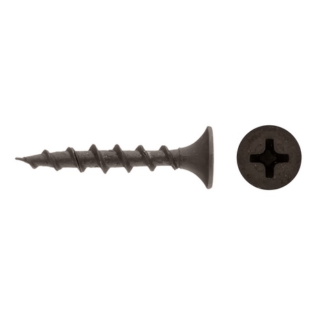 Потайная головка, острый наконечник и крестообразный шлиц. Необходимо добавить, что он исключительно черного цвета.