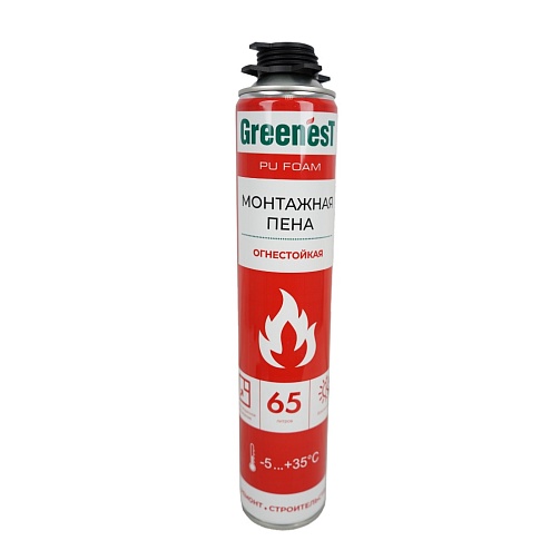 Пена монтажная 850 мл. 65 GREENEST профессиональная огнестойкая